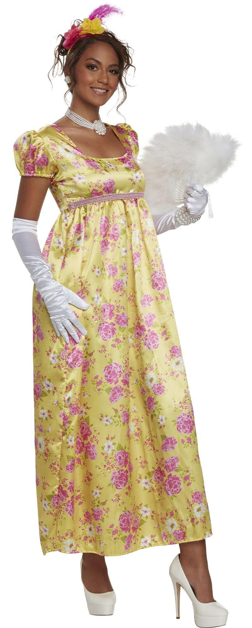 Pink Yellow Floral Empire Waist Dress For Adults Regency Romance Party City